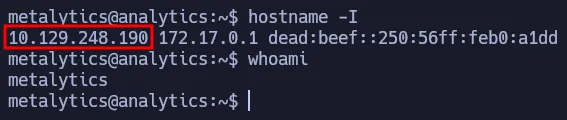 Analytics is an easy-difficulty Linux machine featuring a vulnerable Metabase instance. We leverage a pre-authentication RCE (CVE-2023-38646) to gain an initial foothold inside a Docker container. From there, we extract hardcoded credentials from environment variables to SSH into the host. Finally, we achieve root access by exploiting a vulnerable kernel version.